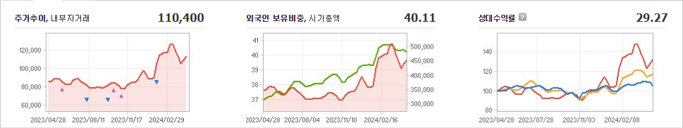 기아 주식은 현재 110,400원으로 거래되고 있으며, 전일 대비 -1,800원 하락한 상태입니다. 기아의 대주주인 현대자동차(외 4인)은 지분의 35.92%를 소유하고 있습니다. 기아는 자동차 제조업체로서 현재 주가는 110,400원이며, 시가 총액은 45조 7526억 원입니다. 전체 발행 주식수는 402,044,203주이며, 외국인 보유 비중은 40.11%입니다. 장중 거래량은 2,114,673주를 기록했습니다. 기아의 매출액은 998,084억 원입니다.