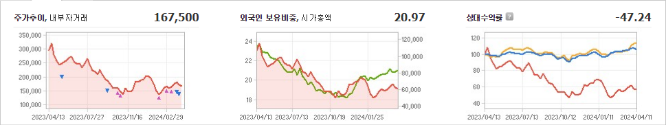 엘앤에프의 현재 주가는 167,500원으로, 전일 대비 -2,500원 하락했습니다. 주주현황을 살펴보면 새로닉스(외 17인)이 지분의 23.73%를 소유하고 있습니다. 엘앤에프는 전자 장비 및 기기 기업으로, 장중 기준 주가는 167,500원입니다. 시가 총액은 5조9315억 원이며 발행 주식수는 36,255,993주입니다. 외국인 보유 비중은 20.97%이며, 장중 거래량은 1,035,653주입니다. 또한, 매출액은 46,441억 원을 달성했습니다.