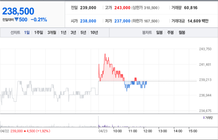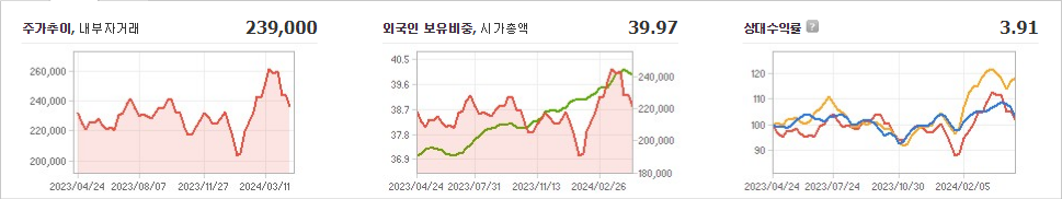 현대모비스의 현재 주가는 239,000원이며 전일 대비 -8.78원의 변동을 보이고 있습니다. 현대모비스의 주주 구성을 살펴보면 기아(외 6인)이 지분의 31.68%를 소유하고 있습니다. 현대모비스는 자동차 부품 기업으로서, 현재 주가는 239,000원입니다. 시가 총액은 22조 3367억 원이며, 발행 주식수는 93,655,094주입니다. 외국인 보유 비중은 39.97%이며, 거래량은 155,158주를 기록했습니다. 매출액은 592,544억 원입니다.