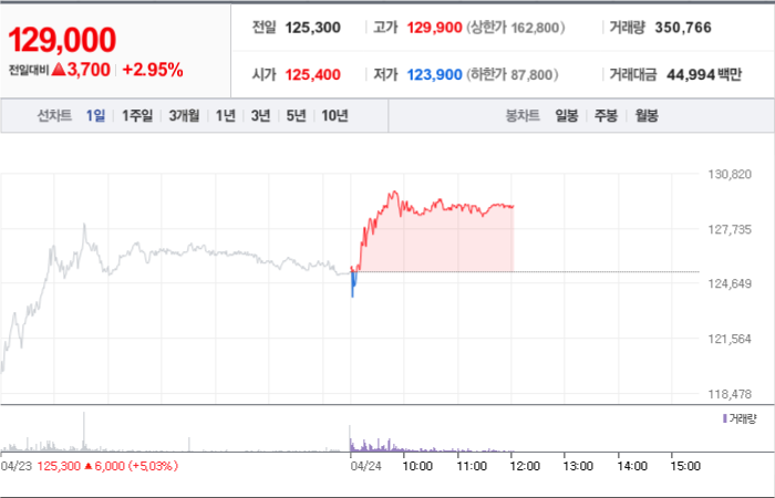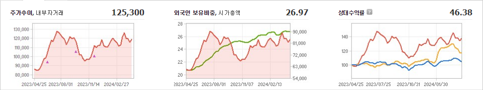HD한국조선해양의 현재 주가는 125,300원으로 전일 대비 -0.48원 하락한 상태입니다. 주주현황을 살펴보면 현대중공업지주(외 8인)이 지분의 36.65%를 소유하고 있습니다. 이 조선 기업의 시가 총액은 9조1297억 원이며 발행 주식수는 70,773,116주입니다. 외국인 보유 비중은 26.97%이고, 거래량은 577,236주입니다. 또한, 매출액은 212,962억 원입니다.