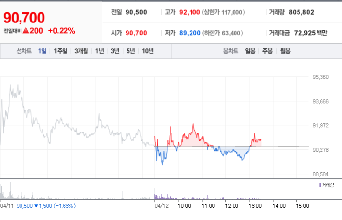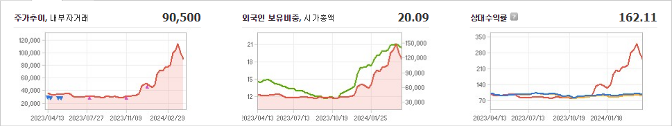 HLB는 제약 기업으로, 현재 주가는 90,500원입니다. 전일 대비 -1,500원의 하락세를 보이고 있습니다. 주주현황을 살펴보면 진양곤(외 7인)이 지분 9.60%를 소유하고 있습니다. HLB의 시가 총액은 11조9056억 원이며 발행 주식수는 130,830,364주입니다. 외국인 보유 비중은 20.09%이며, 장중 거래량은 1,553,074주를 기록했습니다. 또한, HLB는 최근 매출액으로 429억 원을 달성했습니다.